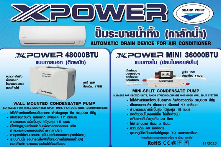 X POWER สำหรับแอร์ ได้สูงสุด 48,000BTU ใช้คู่กับสาย PE ขนาด 6x9mm.